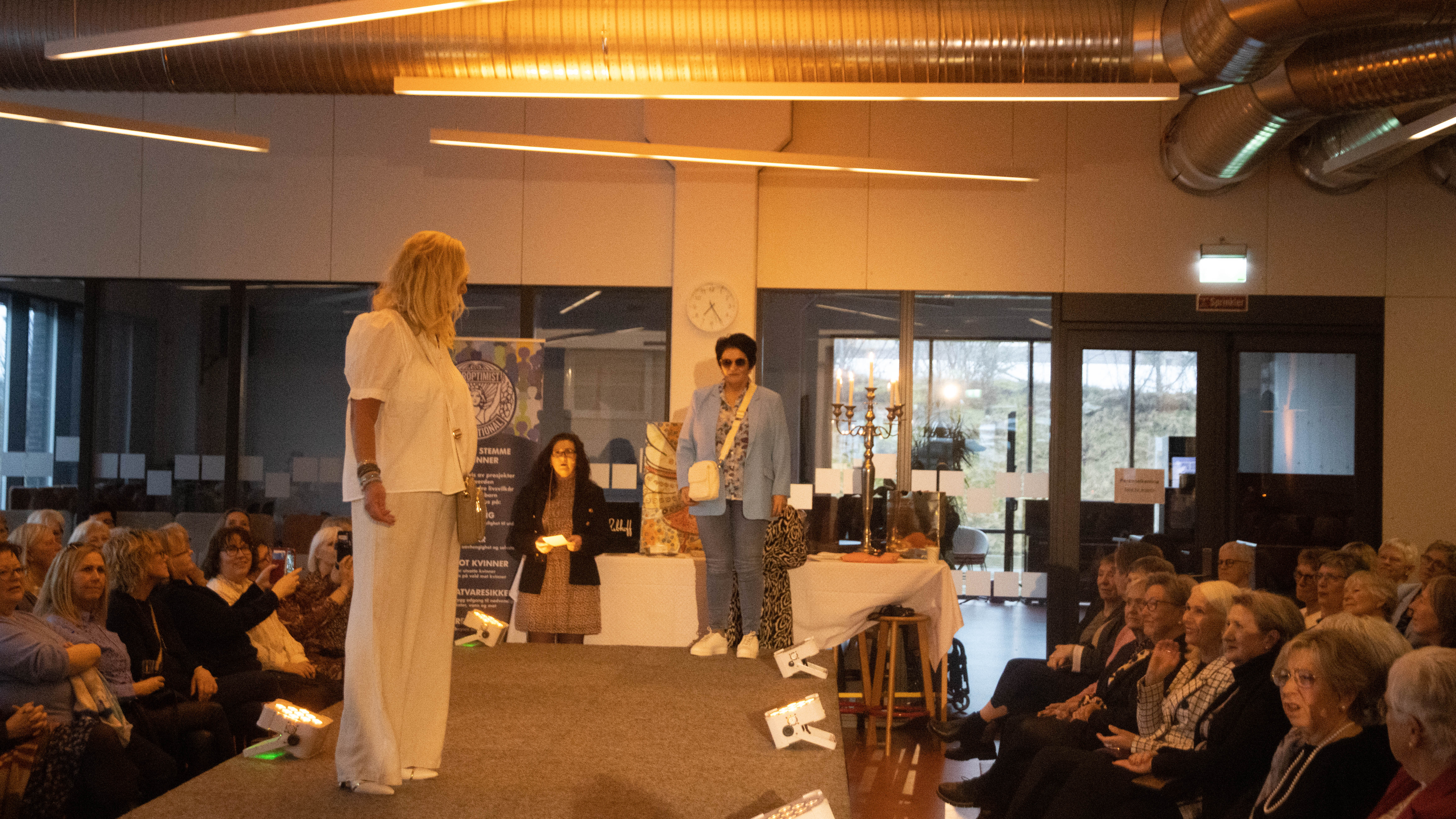 God hjelp med mikrofon av Hallgeir Reisestad til våre 2 dyktige konfransierer Keth Helen Boge Thu (til venstre) og Hanne-Marie Bøe Netland.